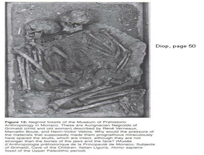The Grimaldi Negroids have left their numerous traces all over Europe and Asia, from the Iberian Peninsula to Lake Baykal in Siberia, passing through France, Austria, the Crimea, and the Basin of Don, etc. In these last two regions, the late Soviet Professor Mikhail Gerasimov, a scholar of rare objectivity, identified the Negroid type from skulls found in the Middle Mousterian period.