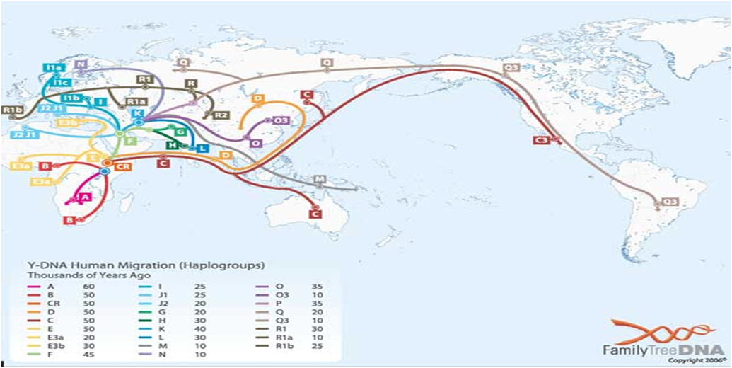 “The West Coast scientists were intrigued. On the basis of their own preliminary data, they, too, suspected that the pace of human evolution was accelerating. But they had arrived at the same crossroads by a different route. “We were focused on cultural shifts as a prime driving force of our evolution,” Moyzis says. As he explains it, an exceptional period in the history of our species occurred about 50,000 years ago. Humans were pouring forth from Africa and fanning out across the globe, eventually taking up residence in niches as diverse as the Arctic Circle, the rain forests of the Amazon, the foothills of the Himalayas, and the Australian outback. Improvements in clothing, shelter, and hunting techniques paved the way for this expansion.